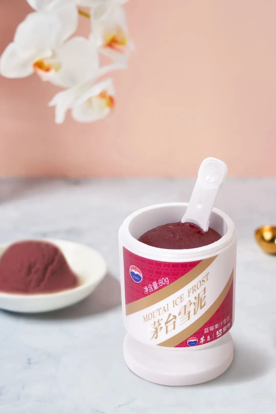 茅台雪泥(蓝莓果汁雪泥)新类型,全新雪泥质地,果酱口感沙爽十足,清凉满分,精选12%以上优质浓缩蓝莓汁,添加2%的53%vol贵州茅台酒,经典蓝莓风味与优雅丰满的,茅台酱香风味相互衬托,口感冰爽绵密,香味浓郁,唇齿留香,口口沙爽。