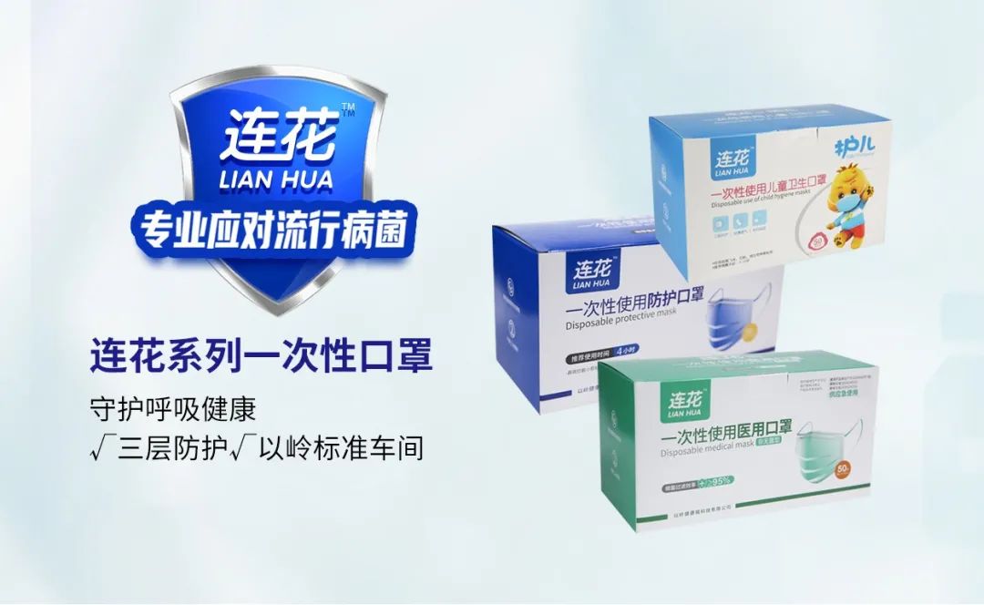 新冠疫情爆发初期口罩紧缺,以岭勇担社会责任,积极筹建口罩生产线生产连花系列口罩,助力大众出行安全防护。目前连花口罩涉及成人、儿童口罩,医用口罩、医用外科/防护、KN95等系列。