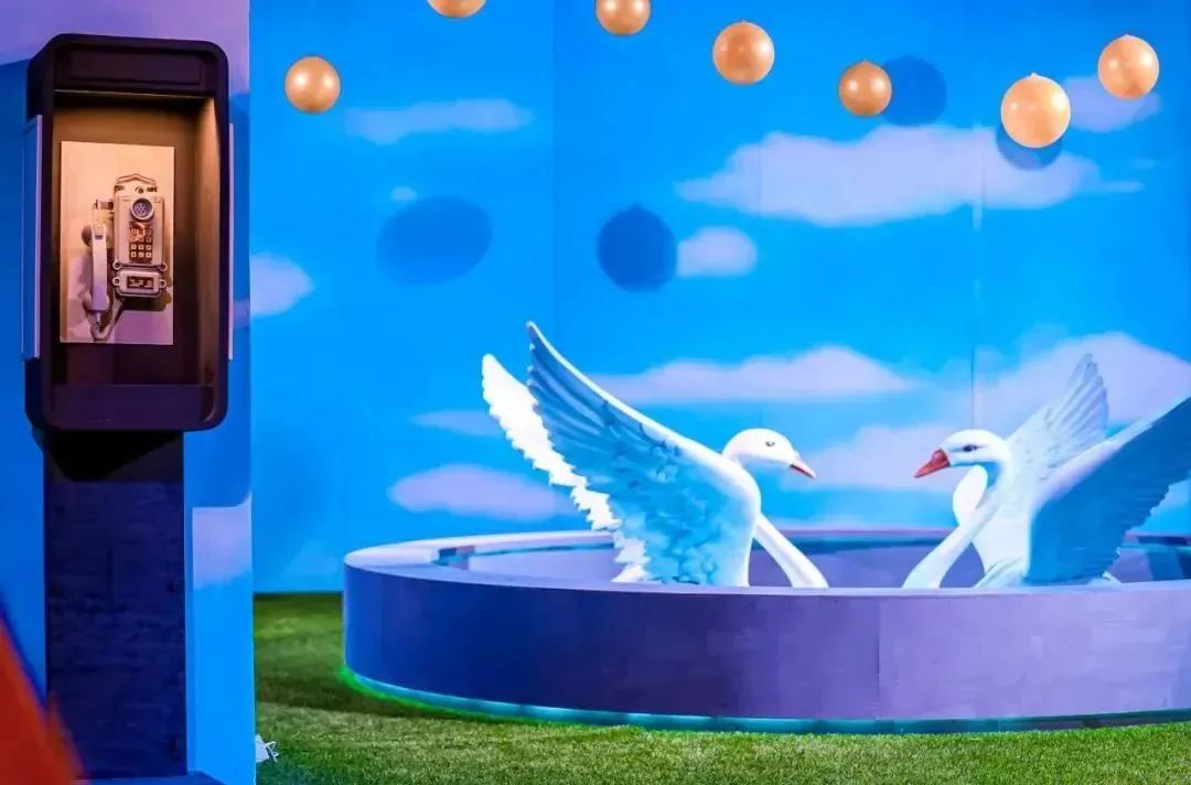 超2000平米手绘展览墙超写实还原幾米5部绘本中原境,十个主题不同的空间情境梦幻营造《微笑的鱼》、《向左走·向右走》、《月亮忘记了》、《幸运儿》、《遗失了一只猫》的平行世界。