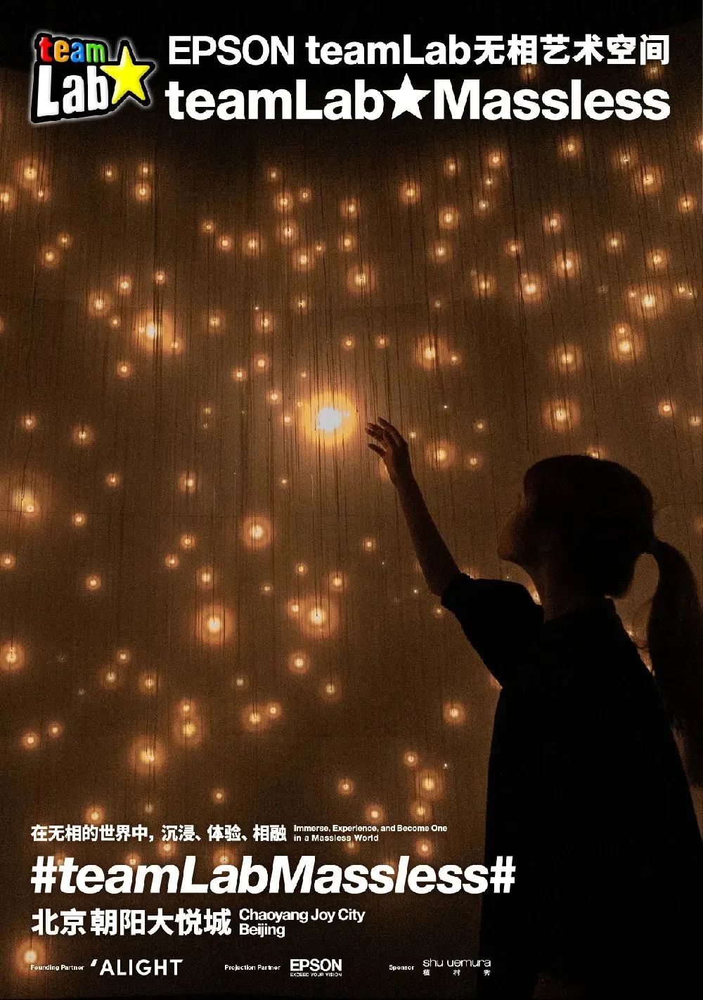 艺术团队teamLab打造的沉浸式美术馆“EPSON teamLab无相艺术空间: teamLab Massless Beijing”,将于2022年11月19日在北京朝阳大悦城顶层开幕。展馆挑高11米,总面积约10,000平方米,是teamLab最大规模的美术馆。10月11日起正式开始售票。