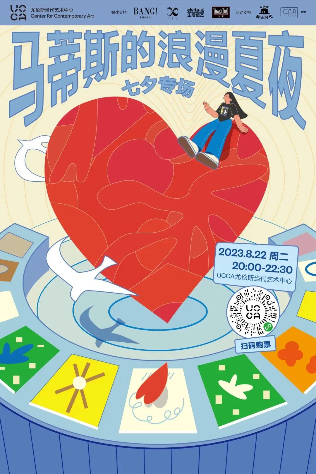 在8月22日“七夕”情人节当天,UCCA尤伦斯当代艺术中心特别推出“马蒂斯的浪漫夏夜——七夕专场”活动:观看展览“马蒂斯的马蒂斯”、在马蒂斯风格创意拍照区留影、跟随专业舞蹈老师体验摇摆舞、还有由创意食物工作室提供的特色小食……无论你有伴还是单身,都将在此收获一个难忘的浪漫夏夜!