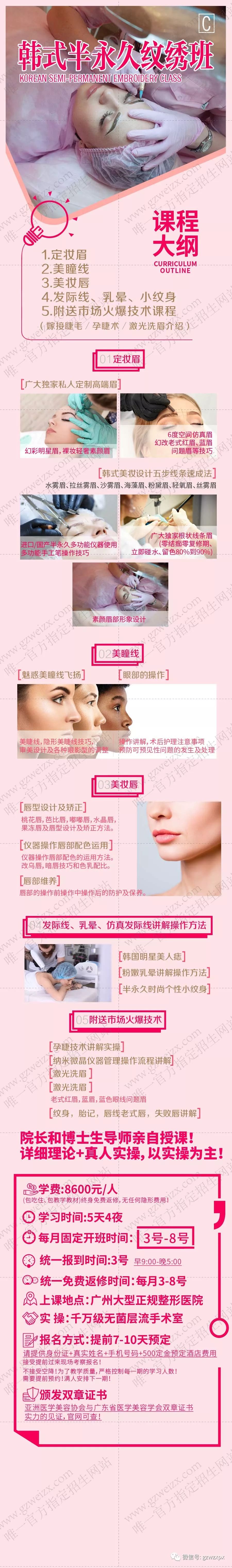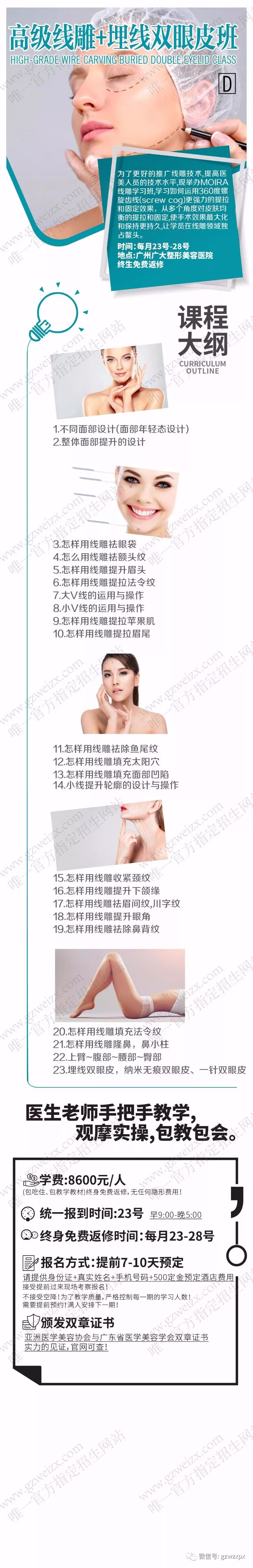 现可报名预定3月3号-8号、13号-18号、23号-28号期微整形培训的课程,预报从速!