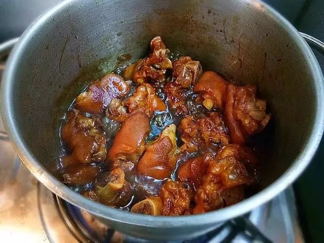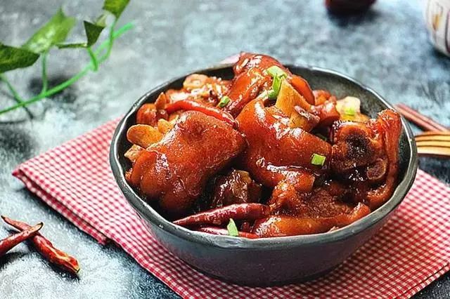 猪蹄煎炸过再烧,皮比较筋道且不油腻,但一定要马上冲冷水才能达到效果。