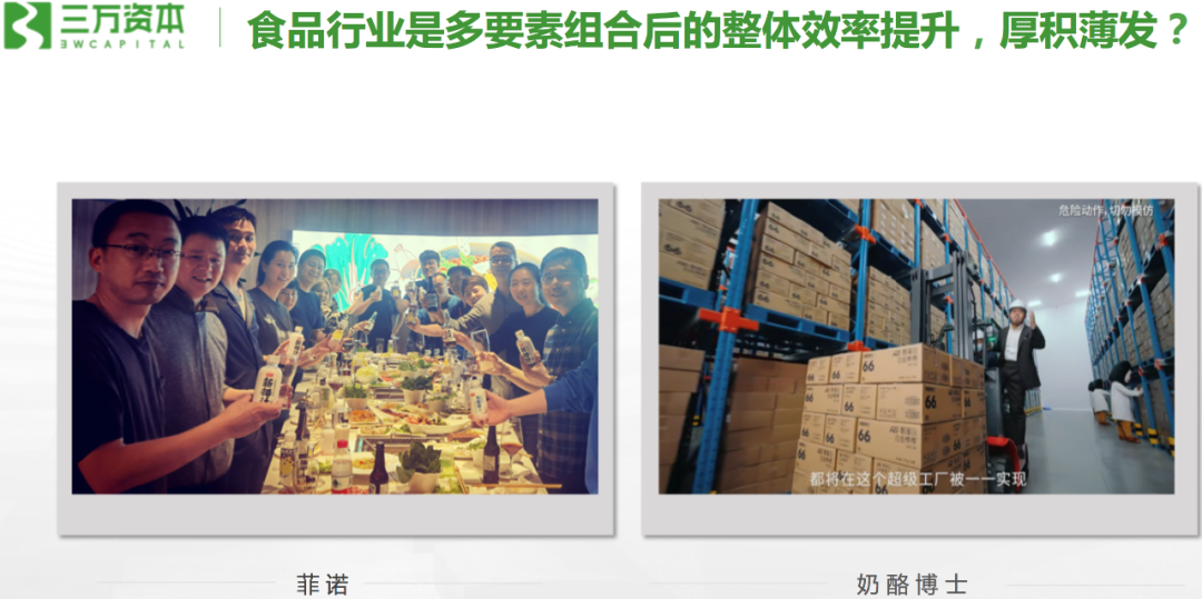 第二,组织就是你怎么样保证自己能长期成为这个品类第一,甚至当你的品类出现瓶颈的时候,怎么找到第二曲线。第三,就是生产要素,资源的问题。食品的生产要素,可能跟移动互联网还不一样,它的生产要素比较多。王饱饱是我们当初的一个项目,也是最早的网红食品,去年增速也出现了一些问题;拉面说也是特别“网红”。当一个企业出现增速问题的时候,到底是什么样的原因造成的?真的如大家所说的“他们没钱了”吗?其实,他们去年账上特别多钱,他们背后有中国最好的投资方,例如,红杉、高瓴,GGV等。我个人认为,这两个项目都是品类的问题。中国到底有多少人吃20块钱的方便面?中国人吃早餐,有多少人吃麦片?我觉得一个创始人要坦诚面对自己的品类。一个品类如果只有70亿元,你做到10亿元,其实已经非常优秀了。有时候PPT写多了,容易自己把自己给骗了,“为中国人早餐提供营养健康的麦麸食品”,但中国人早餐的主流肯定还是吃包子、豆浆、油条、粥、面条等。西麦做了20年也只有十几个亿,一个新品牌应该在什么时候去探索自己的第二品类,其实王饱饱的粥、吐司这些东西,2020年就做出来了,只是到失速的时候才上线这些产品,这一点特别重要,就是我们讲的,战略上创始人要坦诚地面对自己的品类。任何品牌都改变不了消费者的饮食习惯,你是湖北人就是喜欢吃辣,你是江苏人就喜欢盱眙小龙虾。你怎么样用品牌去改变用户的饮食习惯?其实,只有顺应。另外两个项目也特别“网红”。一个,是菲诺,去年在瑞幸咖啡的椰香拿铁卖了1亿杯;另外一个,是奶酪博士,也在很多线下渠道流通。这两个都超越了10亿元。我觉得10亿年收入是一个新消费品牌的屏障和瓶颈,他们是属于穿越了这个瓶颈的。做新消费品牌,有很多生产要素,比如你与资本的关系、与股权债权的关系,你与超级平台的关系,像京东、拼多多,抖音等,你与线下经销商的关系,与餐饮连锁的关系等等,它的生产要素比较多,这两个品牌的创始人把生产要素组合得比较好。战略的原点叫“社会希望你成为什么样的企业”,仅仅是在天猫、抖音做点流量投放吗?它到底创造了什么样的社会价值?我比较喜欢圣农这家公司,我觉得它还是创造了一些社会价值的。每年我们都带企业去学习参观,在白羽鸡这么小的一个品类上,慢慢把它做透了,一年接近200亿的收入,从一产的育苗、饲料、养殖到二产的加工到三产的全渠道,我说的是全渠道,肯德基、麦当劳、电商、零售渠道等,都做得很好。我们投资的另外一个项目在陕西,有一个食品产业园——菜字头产业园。社会需要我们成为什么样的食品企业?或者说需要我们投资什么样的食品企业?这在当地种了几万亩茄子,它是茄子第一名,把茄子变成茄子段,做成半成品的净菜,配送给餐饮连锁。