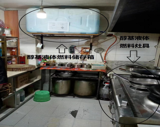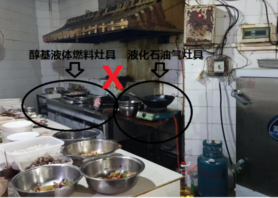 安全隐患:液化石油气和醇基液体燃料在同一房间内使用。