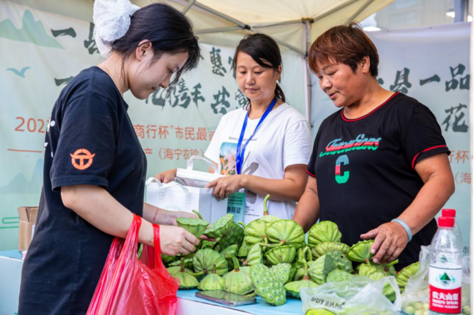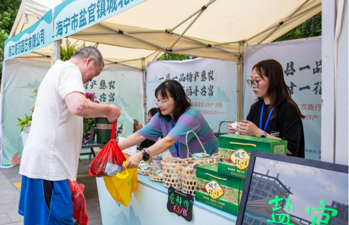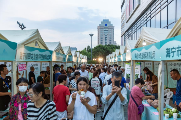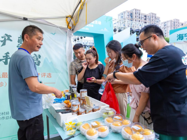 8月18日-20日,2023年海宁市名优土特产(海宁农珍)展示展销活动在海宁银泰城室外广场举行。现场共设置展位45个,汇聚了海宁市本土百余种名优土特产和特色农家小吃,海昌蜜梨、阳光玫瑰葡萄、黄桃等特色水果鲜嫩诱人,松花糕、方糕、粽子、烧卖、大麻饼等农家小吃让人垂涎欲滴,海宁花卉、丁桥鲜糯玉米、长安宴球、斜桥酱腌菜、澳洲淡水龙虾等优质农产品更是吸引不少市民驻足选购。