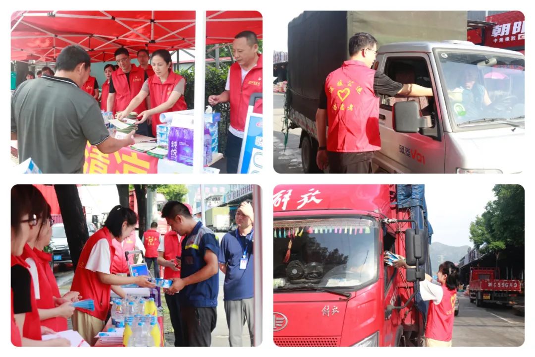 活动过程中,一行人为货车司机、一线维修工等新就业劳动者送上夏日“清凉大礼包”,并叮嘱他们要注意劳逸结合,预防高温中暑和各类安全事故的发生。其中,第一党支部联合ETC流动服务队给货车安装激活ETC、设备检测、设备更换、现场发行、政策咨询等服务;第三党支部联合货运行业党支部给货车司机送上绿豆汤、矿泉水,并发放相关道路运输安全宣传资料;第五党支部联合维修行业党支部的维修员工给货车车况开展免费“体检”,助力确保司机行车安全。