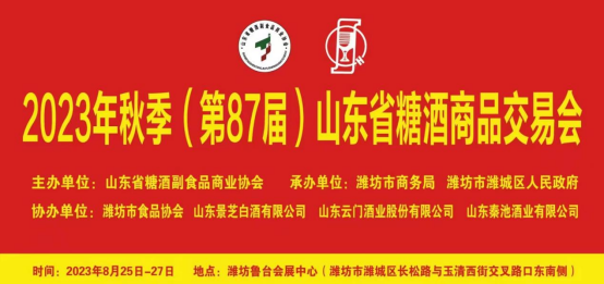 儒风连海岱,更好在潍坊!2023年秋季(第87届)山东省糖酒商品交易会将于8月26日在潍坊市举办。本届省糖酒会由山东省糖酒副食品商业协会主办,潍坊市商务局和潍城区人民政府共同承办,潍坊市食品协会、山东景芝白酒有限公司、山东云门酒业股份有限公司、山东秦池酒业有限公司联合协办。