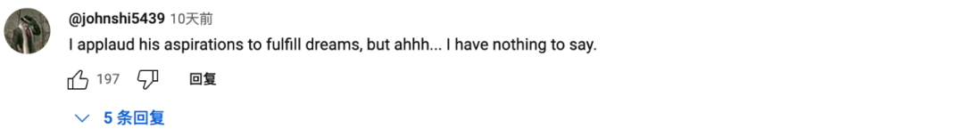 "这是我见过的最离奇、最疯狂的事情,"“当我得知这是个日本人,就没什么惊奇的了。”YouTube 上的另一个人说。