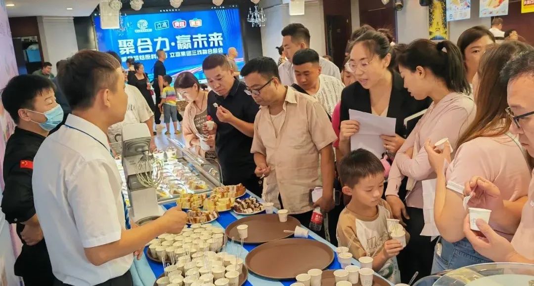 2023年8月18日,由立高华北分公司山西团队与晋城诚品烘焙原料商行联手打造的立高三线融合产品展会圆满落下了帷幕。本次展会精心筹备,内容丰富,不仅有专业的赋能培训,还有立高多款产品的展示品鉴,吸引了现场客户的大量关注和好评。在本次展会上,由烘焙行业实战经验丰富,擅长销售技巧、爆品打造、门店管理、团队修炼等培训内容的讲师冯哲为大家进行专业分享。培训内容主要涉及《门店运营管理赋能》、《中秋新品及营销方案》两方面,结合饼店运营需求及中秋节点营销机会,为到场客户提供可落地的营销打法和新式中秋产品介绍。展会期间,立高华北分公司山西团队布置了沉浸式展区,色香味俱全的烘焙美食精心陈列,为到场的饼店老板、运营人士提供试吃品鉴。烘焙市场竞争日益激烈,强劲的产品力是制胜的法宝。本次展会,立高华北推出了三大系列亮点产品,不光有应时应景的中秋现烤系列产品,还有美味翻倍的甄选厚牛乳系列产品以及颜值诱人的切块乳酸菌雪山蛋糕系列产品。现场工作人员对所展示的各款产品进行详细的介绍,让更多的观众对立高产品有更深的了解与认知。在试吃体验后,大家对立高的新阶流量产品与中秋产品给予了极高的关注和好评。