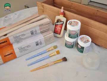 所需材料:一些木片、木板胶、手工颜料或油漆样本、小颜料刷、辅锯箱或斜切锯、喷漆器、热粘合剂