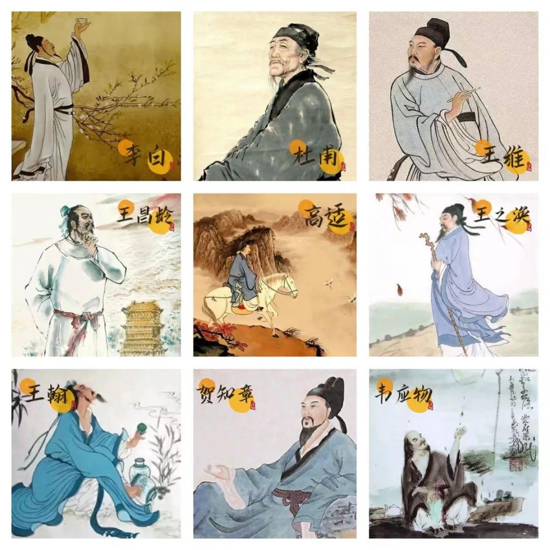 比李白小14岁的还有王瀚(公元687年--726年),他的诗作很少,但一曲《凉州词》便胜却人间无数:“葡萄美酒夜光杯,欲饮琵琶马上催。醉卧沙场君莫笑,古来征战几人回。”比李白大的多一些的是贺知章,虽然相差42岁,但并不妨碍他们成为好友。天宝元年,李白来到京城长安,孤身一人住在小客店里。一天,他在紫客观游览,遇到贺知章,二人一见如故。黄昏时分,贺知章邀请李白去饮酒,在酒店坐下,才想起没有带钱,便把腰间所系皇家颁发的金龟解下作为酒钱。后来,贺知章向唐玄宗推荐李白,皇帝也久闻李白大名,于是任命李白为翰林待诏。后来贺知章去世,李白独自对酒,想起当年金龟换酒,怅然有怀,写下《对酒忆贺监》:“四明有狂客,风流贺季真。长安一相见,呼我滴仙人。昔好杯中物,翻为松下尘。金龟换酒处,却忆泪沾巾。”上述涉及韦应物、李白、杜甫、王维、王昌龄、高适、王之涣、王翰、贺知章九位诗人,其中最小的是韦应物(公元737年--792年),最大的是贺知章(公元659年--744年),时间跨度78年。在几十年中,这么多的优秀诗人、优秀作品集中涌现,蔚为奇观、令人惊叹。有唐一代,著名诗人灿若星辰,名篇佳作数不胜数。清朝人编撰《全唐诗》,收录了2200多位诗人的48900首诗作。唐朝,真是诗的海洋,那300年,真是诗的时代。诗与酒、酒与诗的交融,创造出古代中国瑰丽而独特的酒文化。