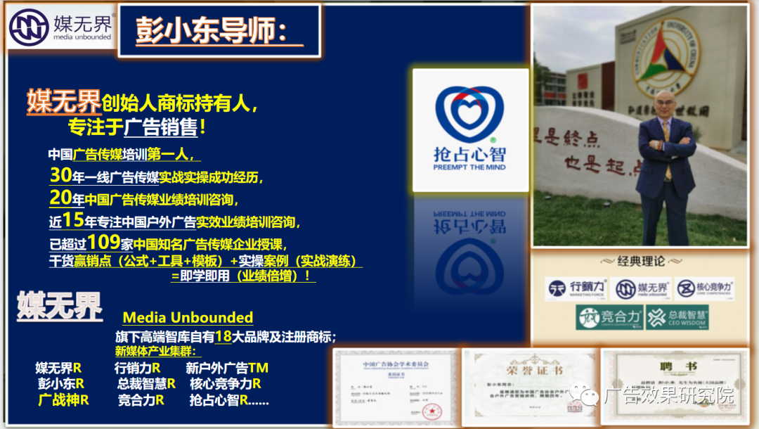 2023年彭小东导师课程I论坛现已全面开启预订,欢迎提前预订,您将有机会免费获赠(解释权归彭小东导师及其团队):1、课后会根据授课实际现场情况免费赠送广告销售100问100答,100句赞美话术,中国广告销售实战技巧秘籍手册等。2、同时根据每家广告传媒公司实际情况提供相应咨询,可以考虑免费赠送包括中国户外广告传媒公司各部门管理制度【如薪酬标准、业务提成】及各种管理表格等;(再次郑重声明:我们绝不对外销售任何课件和资料,如有发现,欢迎举报,一经查实,必将重谢!)。3、同时还会免费获赠彭小东导师亲笔签名赠书和“媒无界”、“广告效果研究院”、“户外智造”、“新户外广告”、“广战神”、“抢占心智”、“彭小东”等免费推广和长期免费咨询等。如果实在不准备也不想推荐建议和邀请老师授课的再或有打扰到您,敬请尽早从我们的渠道以及平台(包括但不仅限于微信公众平台,微信朋友圈以及微信群等自媒体社交媒体彻底退出),特别感谢!我们也会随时清理优化和升级;相互欣赏,彼此尊重,彼此成就!采购人名称:贵州茅台酒厂(集团)保健酒业销售有限公司地 址:贵阳市观山湖区诚信北路8号绿地联盛国际5号楼1单元30层联系电话:0851-86790171(前台)、0851-84398719招投标是指招标人依法公开发布采购需求信息并邀请符合条件的潜在投标人参加竞争,以实现商品或工程的采购和施工。以下是一些招投标的注意事项:1、了解相关法律法规:在进行任何一项业务之前,首先应该了解相关的法律法规,遵守规定才能保障自身的合法权益。2、注意资质证明文件:作为投标方,在提交投标文件时,资质证明文件要真实有效、符合相关要求。3、仔细审读投标文件:在收到招标方的招标文件后,应认真阅读各项内容,明确投标方必须提交的资料、投标方式等详细信息。4、根据标段特点制订投标策略:不同的标段可能会有不同的特点,如施工周期、技术难度、预算限制等等。针对不同的标段特点,需要制订相应的投标策略。5、制作细致、完备的投标文件:在准备投标文件时,需要将所有要求的信息填写完整、材料齐全。尽量按照招标方的要求格式递交投标文件。6、关注政策变化:监测政策、市场变化,实时进行调整和变通,以确保投标竞争力。7、调查招标方背景:在正式参与招标之前,可以通过调查掌握招标方的相关情况,了解其信誉度及工作质量等方面。8、注意时间安排:投标过程中,需要合理安排时间,避免因为时间紧张导致文件不全或者填写错误等问题。以上是一些招投标的注意事项,遵守这些规定可以使投标方更加成功的参与到各类项目竞争中。我们特别倡议:各广告传媒公司:广告发布必需按实际收款发布,坚守3不主义,不欠款不拖款不尾款!彭小东导师经常与大家分享:广告销售比没有客户,业务和合同更痛苦和悲催的就是按质按量的发布完广告后不能收款!请记住,收款才是真正的王道,尤其是尾款才是真正的利润!免责声明:本微信公众号所发布的招投标及其相关信息资料均来源于互联网,转载的目的仅在于传递更多信息及用于网络分享(我们从未收取任何人一分钱);并不代表对其真实性负责,也不构成任何其他任何建议。本微信公众号仅提供信息发布平台,不为其负责,所有关于招投标信息尤其是涉及到资金的请一定要谨慎,责任自负。如果您发现有虚假信息,欢迎举报,请与我们取得联系,我们会及时修改或删除。联系方式:13076066155。未完待续在“广告效果研究院”微信公号