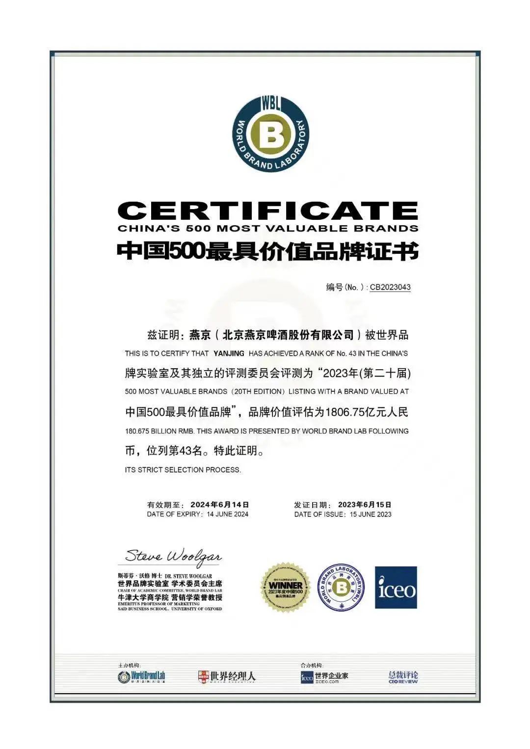 2023年3月,燕京啤酒与中国邮政合作打造主题邮局;5月29日,与中国女足签约,通过体育营销,强化品牌年轻化、高端化形象;6月,燕京啤酒凭借1806.75亿元人民币的品牌价值,荣登2023年《中国500最具价值品牌》排行榜,位列第43位;7月,燕京清爽焕新上市期间,以经典味道和怀旧记忆作为引线,借势女足世界杯的影响力和中国女足的号召力,线上线下齐头并进,将赛事热度引流到品牌流量上,最终在市场端实现销量引爆。