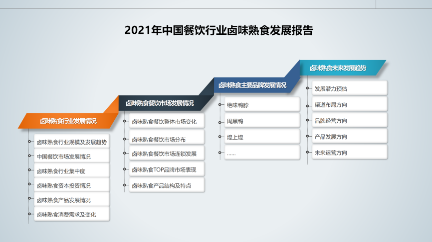 大会议程中,我们将重点推出《2021年中国餐饮行业基本盘及未来趋势》和《2021年卤味熟食大数据研究报告》。