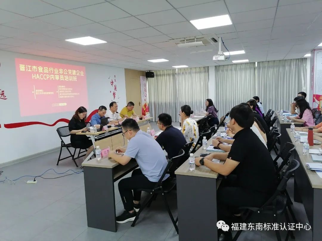 为深入开展学习贯彻习近平新时代中国特色社会主义思想主题教育,落实我院 “两融三贴共建”常态长效机制,近日,东南认证支部与晋江市食品行业非公党建企业开展共建,并开展HACCP内审员培训,此次培训是晋江市市场监督管理局主办,东南认证公司作为承办单位,支部支委受邀参加,并进行现场授课。