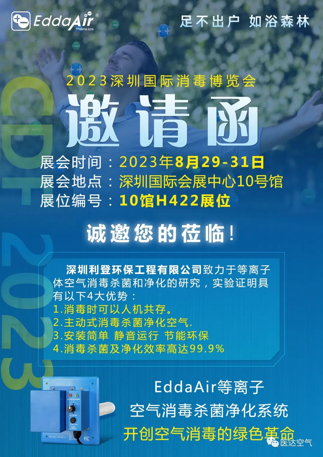 EddaAir等离子空气消毒净化系统,应用物理学、化学、生物学和环境工程等方面的知识,实现自然界空气自我净化这一高效无害的离子化过程,持续释放大量正负离子到空气中消毒杀菌和净化,使室内空气质量得到显著改善,同时快速有效地去除和分解各种有害的污染物。让你“足不出户,如浴森林!”