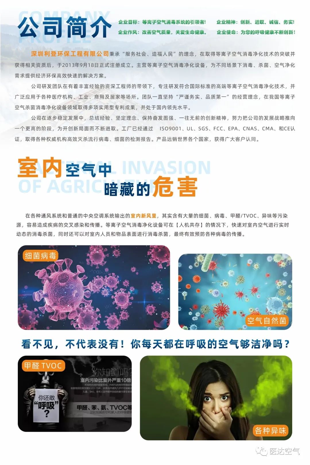 消毒杀菌是全球应对病毒和提升人类以及生物健康的有效预防方法,全球应该重视和积极应对起来。医疗机构、学校、水处理、环境空气、病虫害、畜牧养殖业以及公众家庭都离不开空气的消毒净化。特此诚邀您届时莅临我司展位观摩指导!