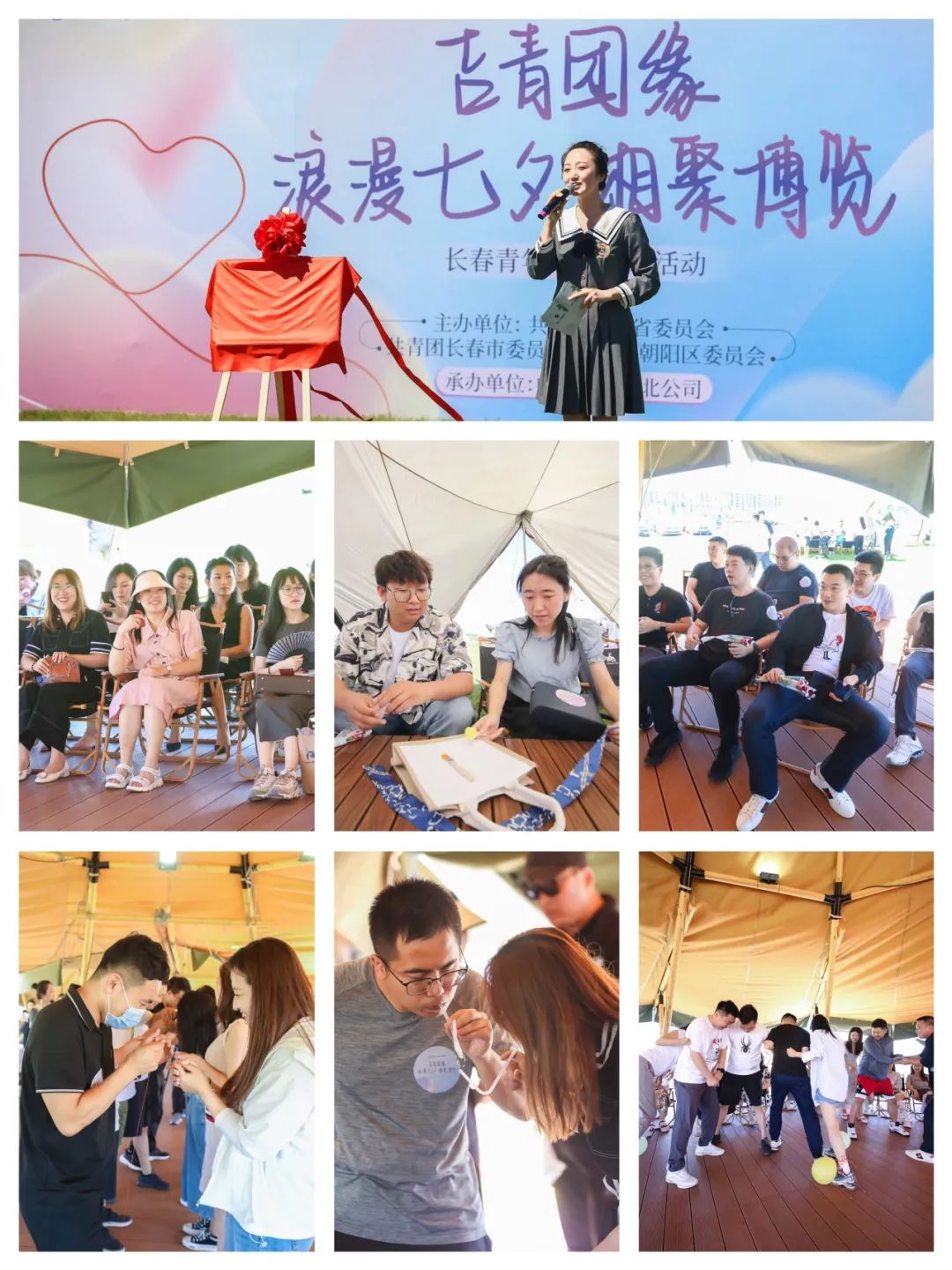 活动现场,张德光、曲宝泽共同为中铁长春博览城项目“汇青年幸福站”揭牌;袁小敏代表承办方致欢迎辞,感谢长期以来关心和帮助企业发展、项目建设并对本次活动给予支持的到访嘉宾;出席领导共同放飞手中气球,在充满诗情画意的氛围中启幕活动,并集中参观中铁长春博览城项目营销体验中心;单身青年们通过“爱情宣言、穿针引线、钥匙圈接力、气球保卫战、碰碰球之王、帆布包DIY、鲜花告别、现场表白、幸运抽奖”等特色游戏环节,彼此增进了解,探寻缘分。整场活动轻松愉快,充满了青年人的趣味与活力。