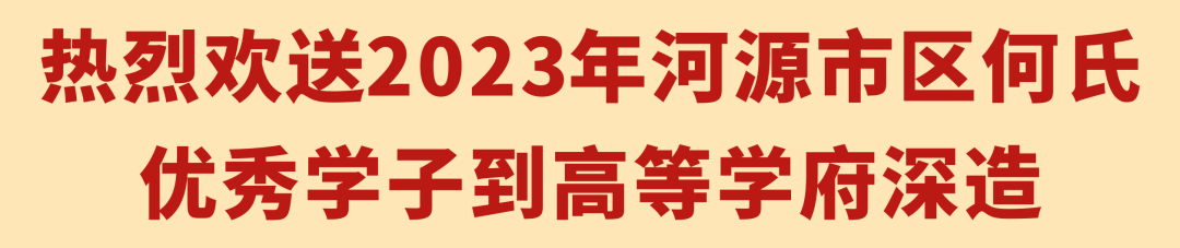 河源市区何氏宗亲会会长致欢迎词,代表河源市区何氏宗亲会对各位何氏理事和各位宗亲们情系宗族教育事业,关心和支持宗亲工作表示崇高的敬意和衷心感谢!对2023年参加高考中取得优异成绩的何氏莘莘学子表示热烈的祝贺。号召并激励何氏莘莘学子,努力学习,为乡争光,为家争荣,做一个对国家对民族有贡献的人。