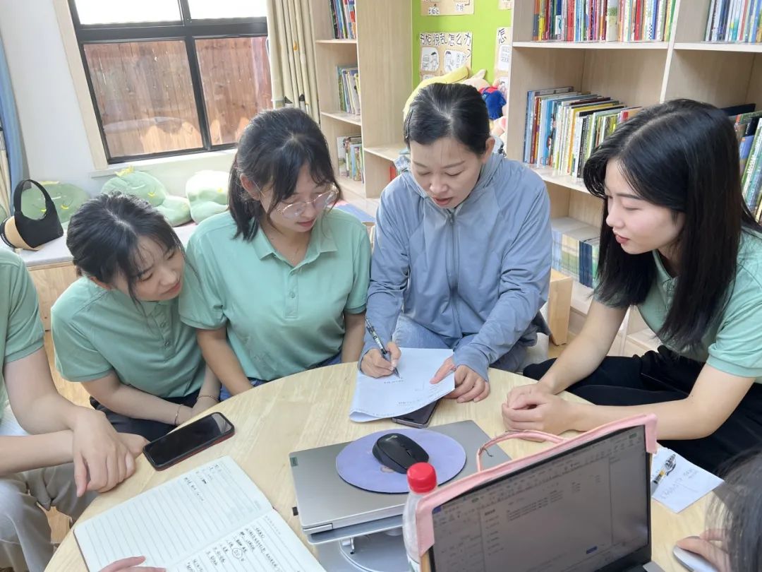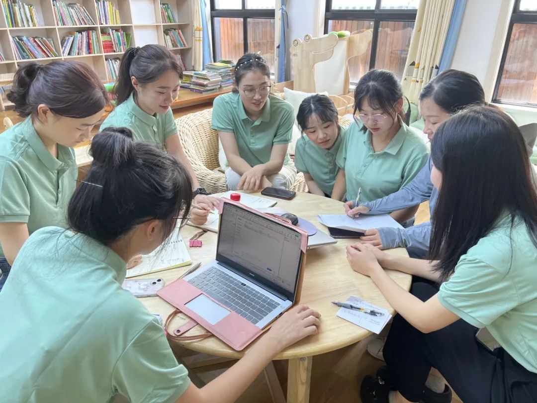 参观后大班段教师回园进行了更深入的探讨,根据“走廊格局”区域主题”“幼儿兴趣点”“材料选择”等方面展开讨论并形成初步的草图。