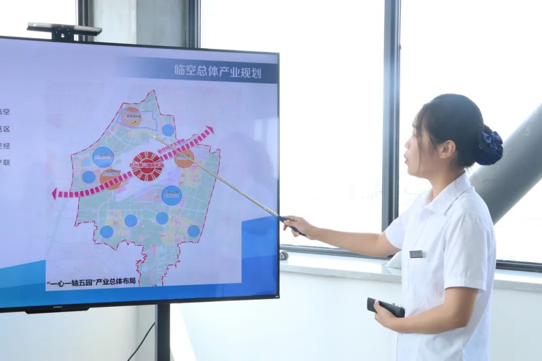 会展中心的工作人员为我们介绍了临空经济示范区区域整体规划、产业布局等概况的介绍。详细说明了大会展中心一期及相关配套项目概况、区位交通、功能布局、周边及沿江环境提升、建设情况等内容。