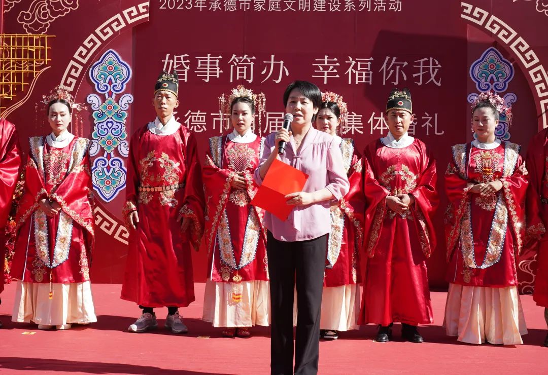 承德市民政局局长牛立杰致证婚词,对新人们表达了“和和美美,顺自天成”的美好祝福。