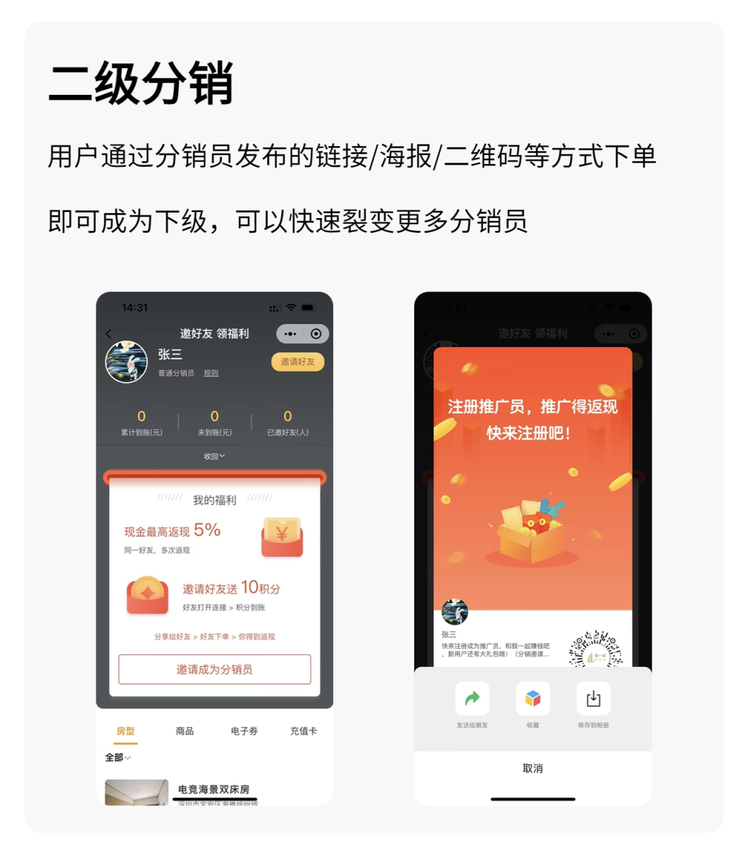 全员分销,通过老带新,实现社交裂变,扩大酒店的知名度和市场覆盖,吸引更多潜在客户。