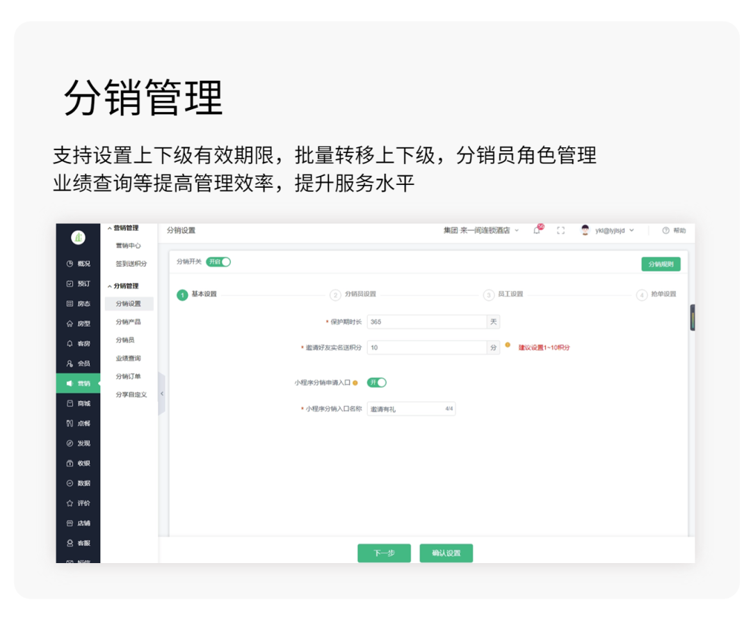 全员分销系统,通过多个分销员推广,有助于增强酒店的品牌影响力和口碑!