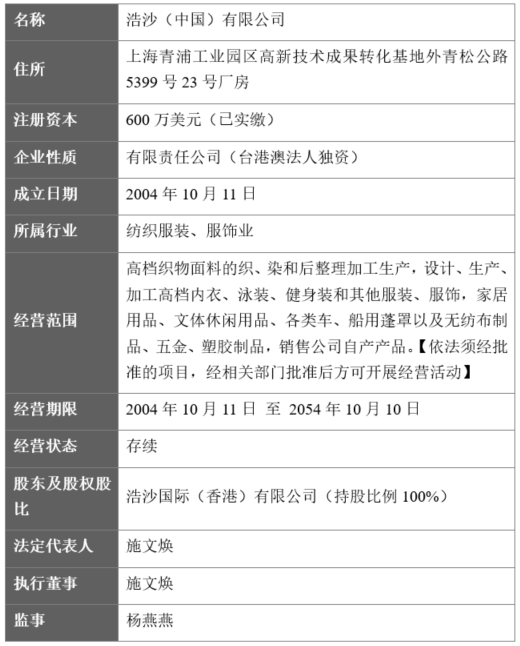账户名:浩沙(中国)有限公司管理人