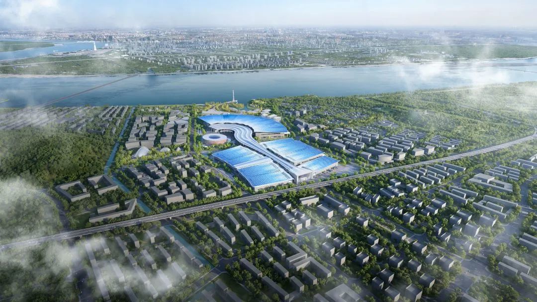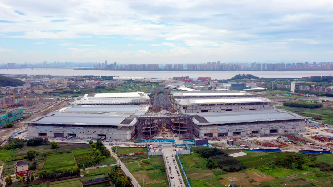 杭州大会展中心项目以钱塘江畔“风帆”为整体造型,采用“杭扇 · 丝绸”的设计元素,取山体厚重沉稳之势和江水灵动飘逸之形,项目投资总额约200亿元,对标国内外一流大型会展场馆,分两期建设,其中在建的一期项目占地面积约530亩,地上建筑面积约42万平方米,室内净展面积15.5万平方米。两期项目建成后将成为长三角配套齐全的新一代会展综合体,设置展览、会议、商业、办公、酒店等多种功能业态,室内净展面积达30万平方米,净展规模位列全国前五、浙江第一。