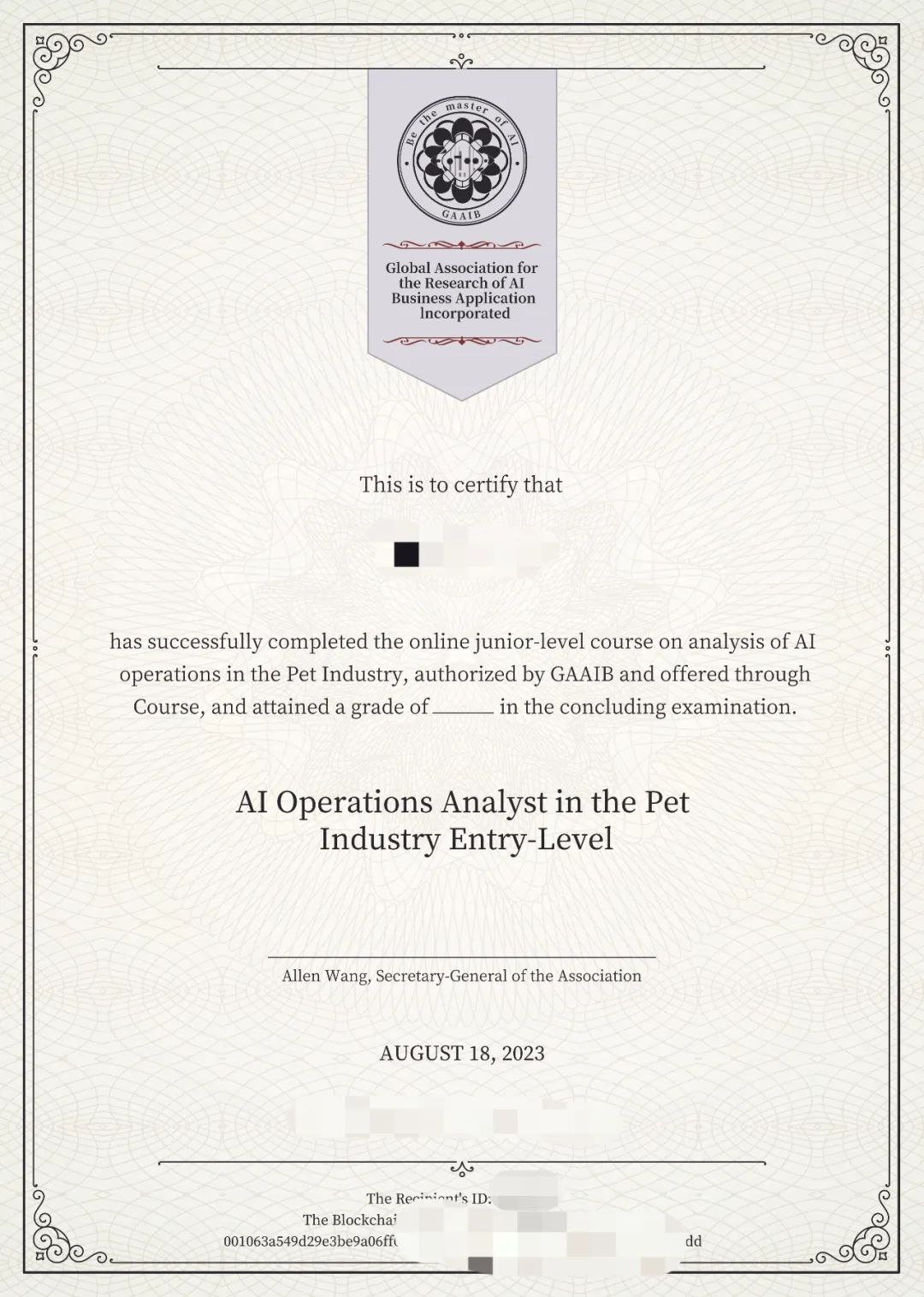 宠物AI运营分析师证书样本