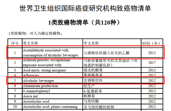 世界卫生组织下属的国际癌症研究机构(IARC),早已把酒精(饮料)列为 1 类致癌物。