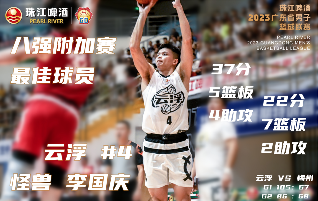 云浮队本届比赛历程可谓跌宕起伏,在小组赛前几轮一直占据榜首,但后面人员缺阵让他们进入附加赛。但云浮“奶兽”组合的魔法力量,特别在附加赛凭借李国庆的两场合共59高得分的表演,傅浩明对于对方内线的威胁,让他们冲着冲着冲进八强。