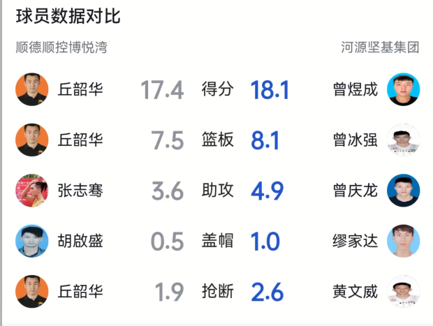 顺德附加赛取得两场大胜势头正盛,他们的球队核心丘韶华发挥稳定,依旧是目前联赛中全部球员得分最高的1779分,并在附加赛的两轮比赛中均砍下18分帮助球队顺利进入八强争夺战。上年半决赛的关键先生,希望在八强阶段继续发挥作用。