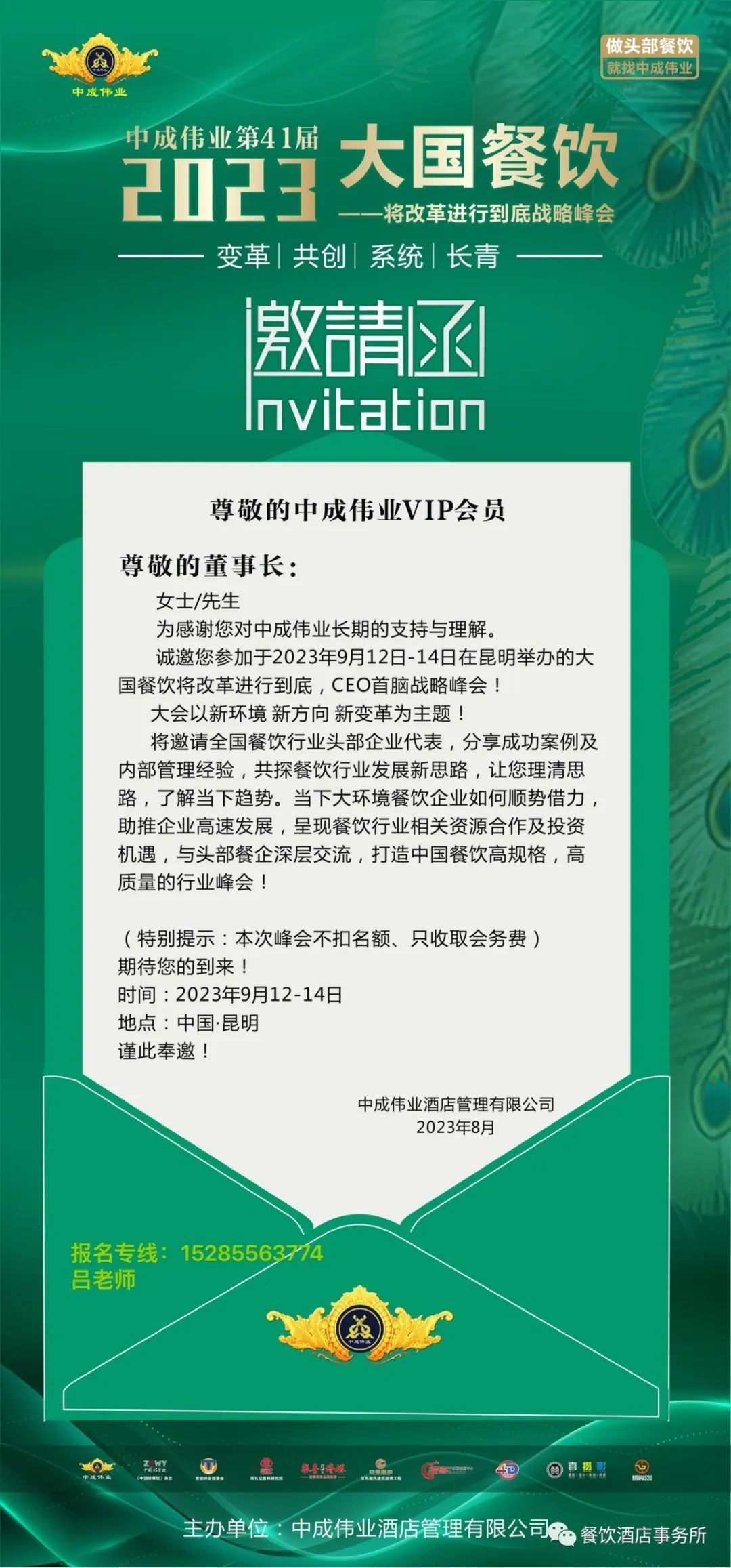 9月12-14日【中国·昆明】餐饮业CEO峰会精彩预报!欢迎抢座!