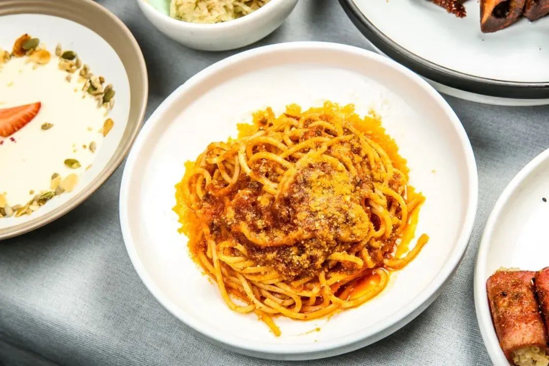 高颜值的意面看着便忍不住咽口水~肉酱覆盖在意面上,入口Q弹多汁,食材与酱汁在唇齿之间不断交织,碰撞出另一番动人的风味~
