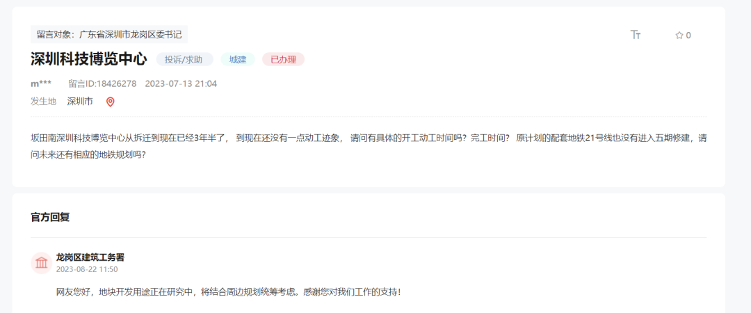 另外龙岗区工务署在回答网友的提问回复,也印证了消息的准确性。