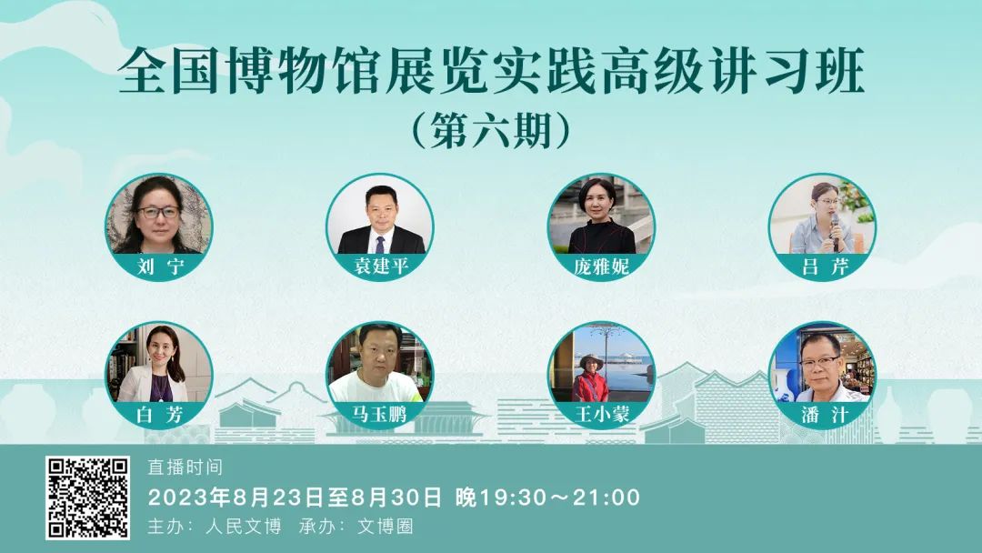 由人民文博主办、文博圈承办的“全国博物馆展览实践高级讲习班(第六期)”,拟于2023年8月23日至8月30日在线举办,讲习班采取线上直播学习方式,邀请8位国内博物馆展陈领域的专家学者授课,通过对重点问题、典型案例的深度解析和经验分享,提升学员的理论水平和实践能力。