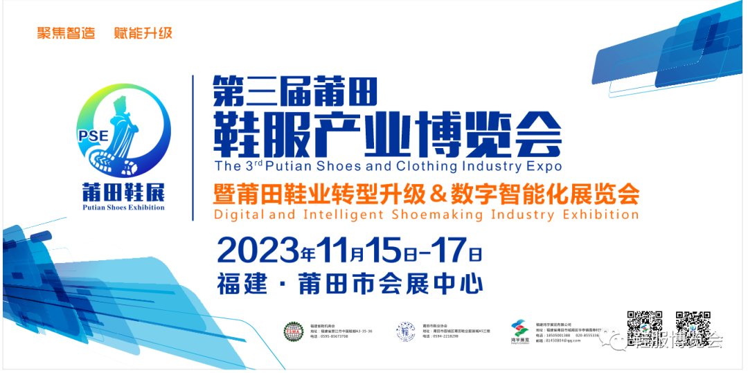 为推广和展示莆田鞋服产业的特色经济,引进专、精、特、新环保材料和智能设备,促进企业向数字化转型升级,由福建省鞋机商会、莆田市鞋业协会、福建鸿宇展览有限公司等单位牵头筹办,以“聚焦智造、赋能升级”为主题的“第三届莆田鞋服产业博览会”定于2023年11月15-17日在莆田市会展中心举办。