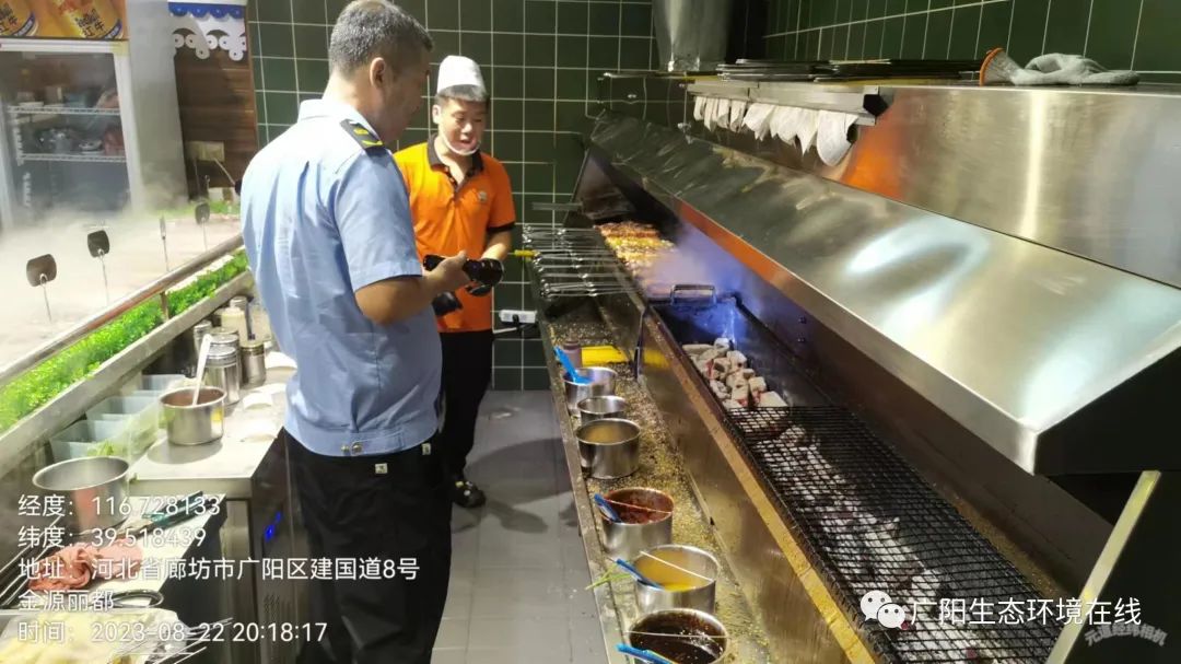 执法人员重点对餐饮油烟排放情况、油烟净化器运行状态以及设备清洗台账等相关情况进行检查,对检查中发现的问题要求商户立即整改。同时督促强调,各餐饮单位一定要落实环保主体责任,规范安装和使用油烟净化设施,同时要定期清理、维护和检修,确保油烟净化设施在营业期间正常运行,减少污染物排放,切实从根源处防控餐饮油烟污染,为改善空气质量夯实基础。8月21日,广阳分局共检查餐饮企业26家,其中限期整改5家,立行立改3家。