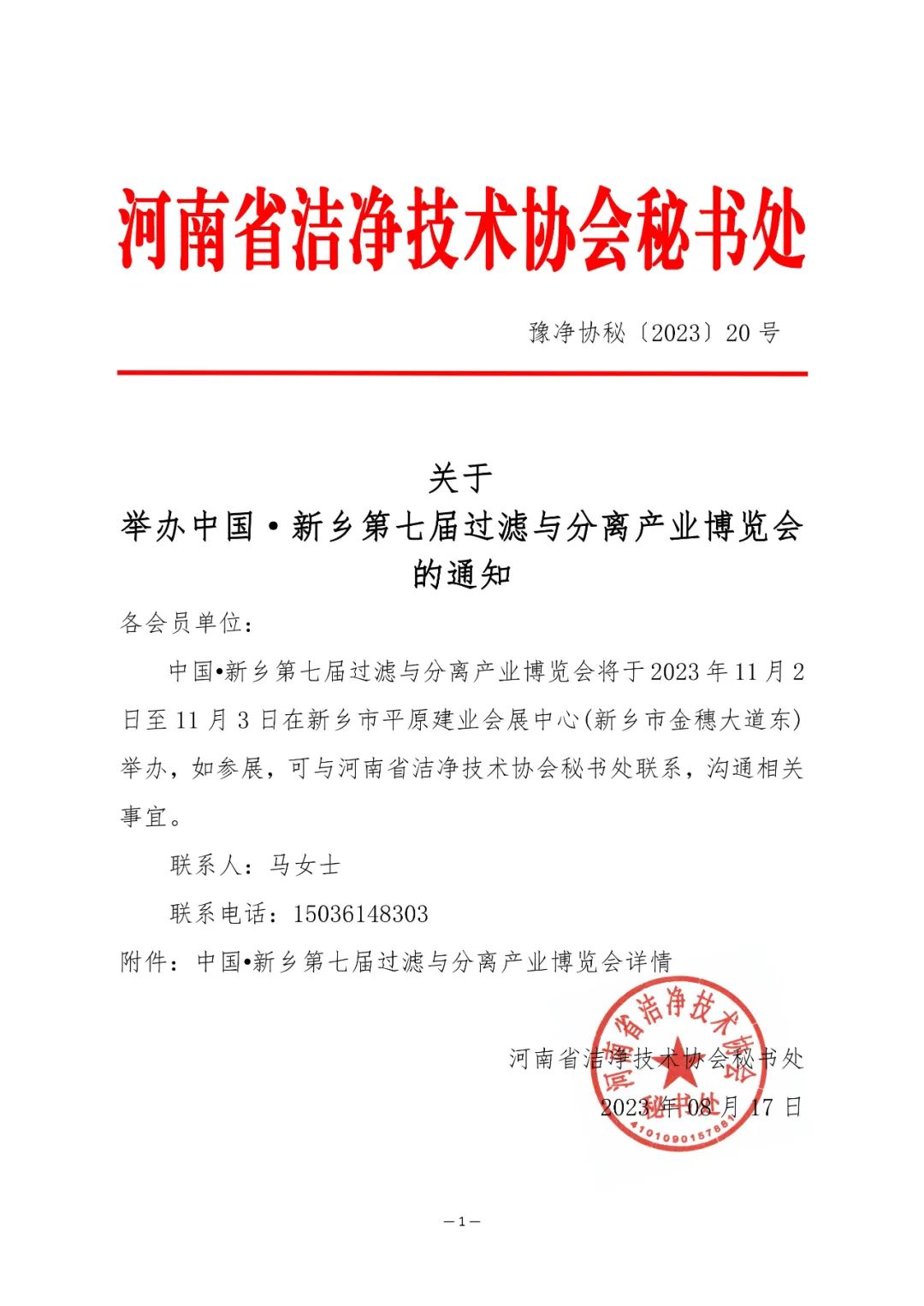 关于举办中国·新乡第七届过滤与分离产业博览会的