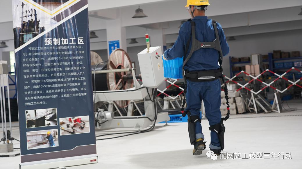 国网杭州市临平区供电公司引入机械外骨骼装备,以工厂化装配中心为试点,旨在降低车间工作人员的工作强度,提高工作效率,减少体力损耗,为进一步助力公司机械化施工转型升级、打造具有省级先行示范效应的现代化未来工厂积聚磅礴力量。
