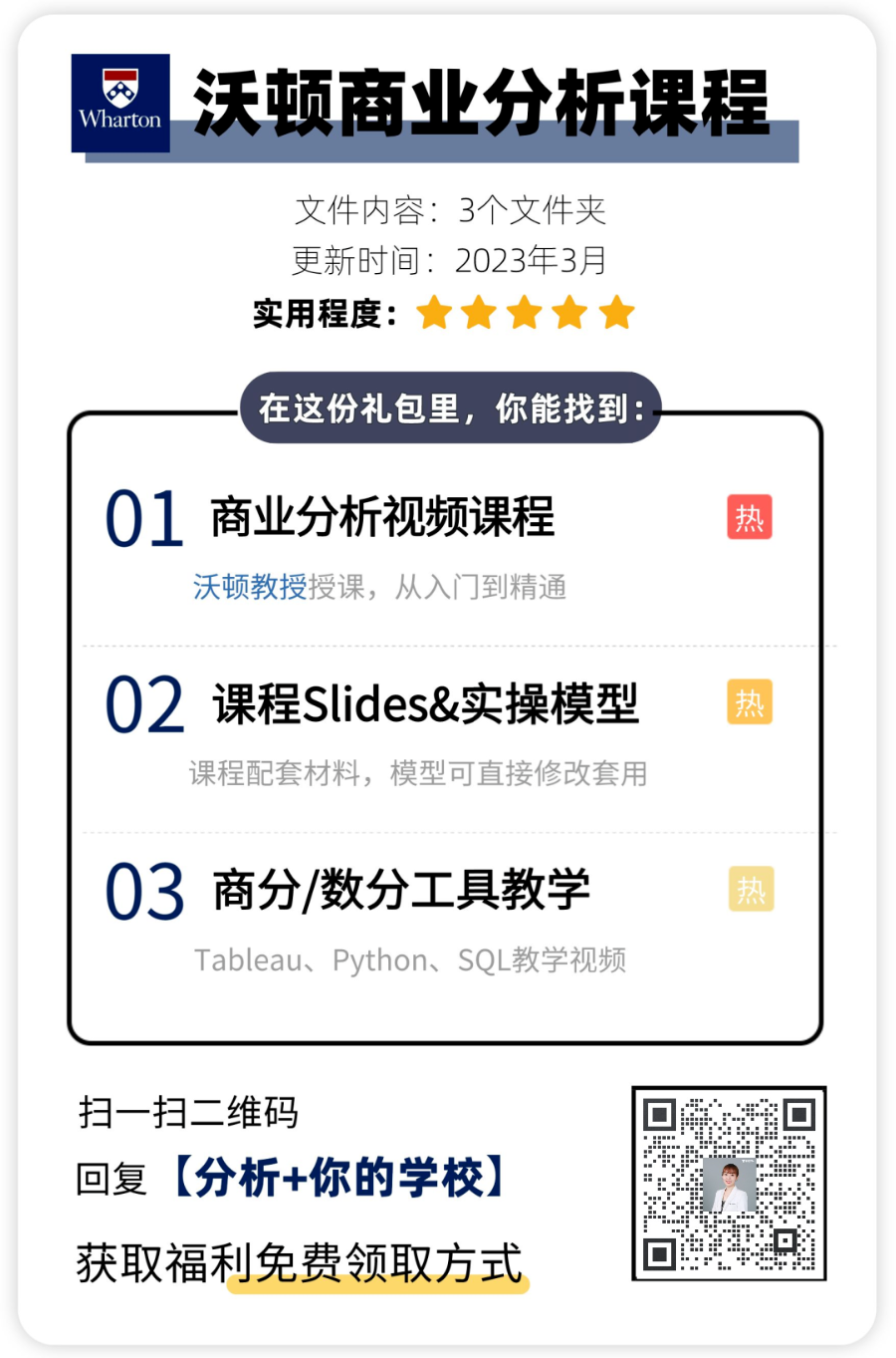 前两个单元Customer Analytics & Operation Analytics都是商业分析入门课程,专门标明是针对“没有分析经验的初学者“。这两个单元的内容是商业分析的基础:从收集分析数据?决策?行动3个步骤切入,学习怎样通过数据分析消费者行为,帮助公司做出更好的决策。作为商科生,对如何行动(比如怎样预测利润、怎样提升利润率等)可能很熟悉,但是如何通过收集数据去做决策是商业分析相关内容,也是商科生转型的第一步。来看看教授如何用生动有趣的案例来教大家“怎样找到你的目标客群”:除了这种生动案例外,几位沃顿教授还会通过Amazon、Google、Starbucks等公司真实案例来教大家目前市场上的Big Name是如何利用数据帮助公司做决策的。对未来想要求职PE/VC或是战略投资行业的同学很有帮助。另外课程还提供教授实操时使用的Excel模型。大家在拿到证书需要通过的Quiz中也会用到大量的模型,这时候用教授给出的Model来操作能更快通过。以上资料澳骄妹也一并为大家收集到了,已经打包整理好!扫码回复【分析+你的学校】,即可获取课程学习全部资料?如果你已经添加过其他的Tutor