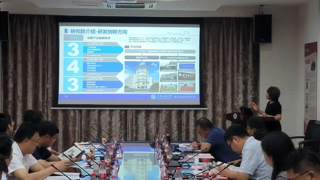 单爱党院长介绍了上海交大材料学院研发的新材料、新技术、前沿产品以及上交大徐州新材料研究院落地徐州发展状况、产业化项目进展情况。