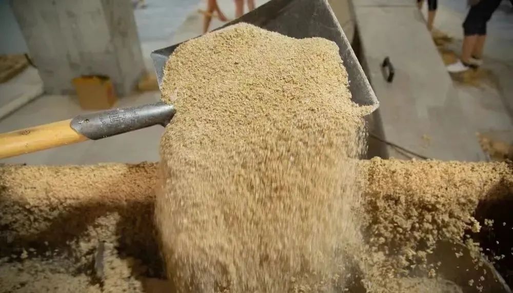 在堆积发酵过程中,堆积顶温达到45℃以上,是大曲酱香酒独有的生产工艺。