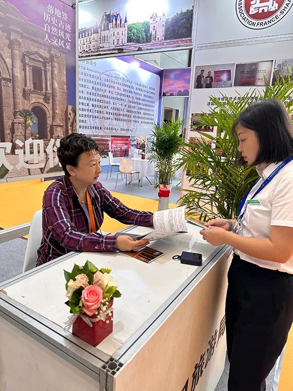 在为各参观者分发景区宣传册期间,职工还细心为大家介绍景区诸多著名景点及文创产品。通过流动宣传,不但成功与三家国内旅行社进行签约合作,还与外国旅行社进行了推广介绍并建立联系。