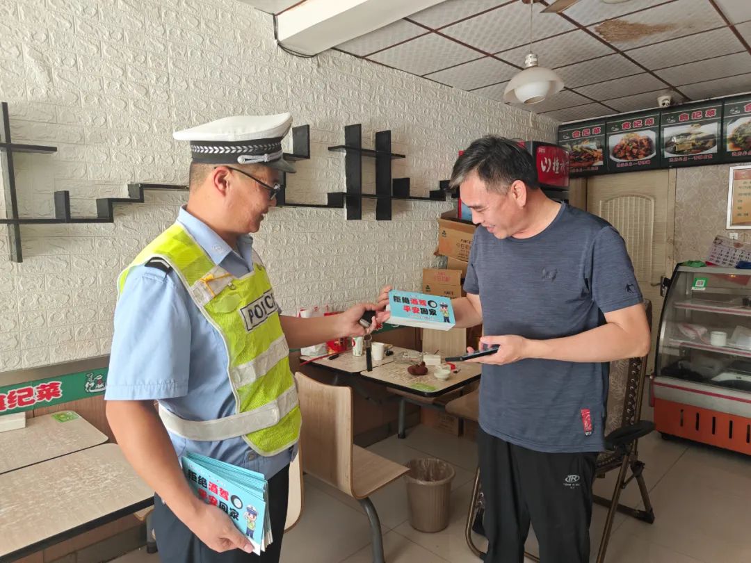 为进一步加大对酒醉驾严重交通违法的宣传教育力度,提高广大群众对酒驾醉驾危害性的知晓率,营造全民自觉抵制酒驾的良好氛围,从源头上预防涉酒交通事故的发生。8月23日,经济区交警深入辖区餐饮服务行业,开展“酒后禁驾”主题宣传活动。