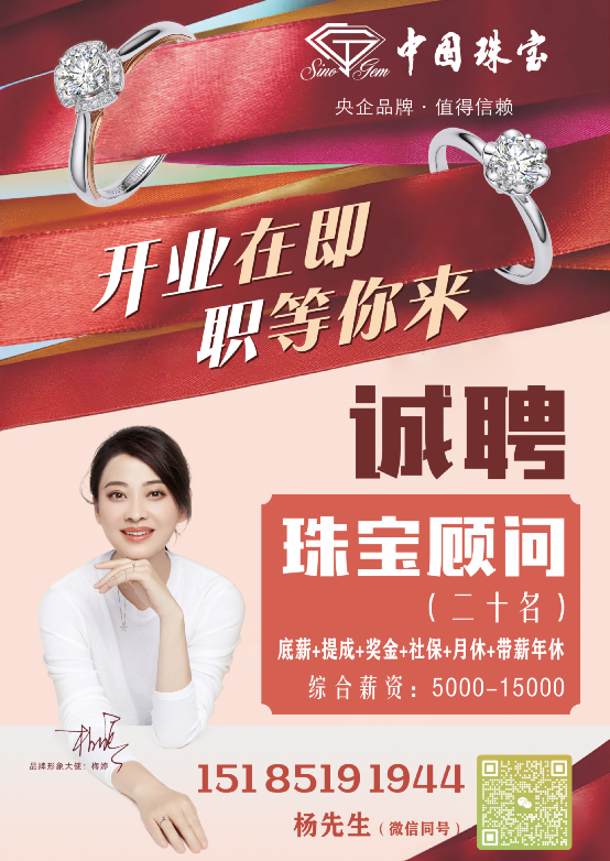 威宁会展中心一珠宝店招聘!综合工资5000-15000+社保+带薪年假