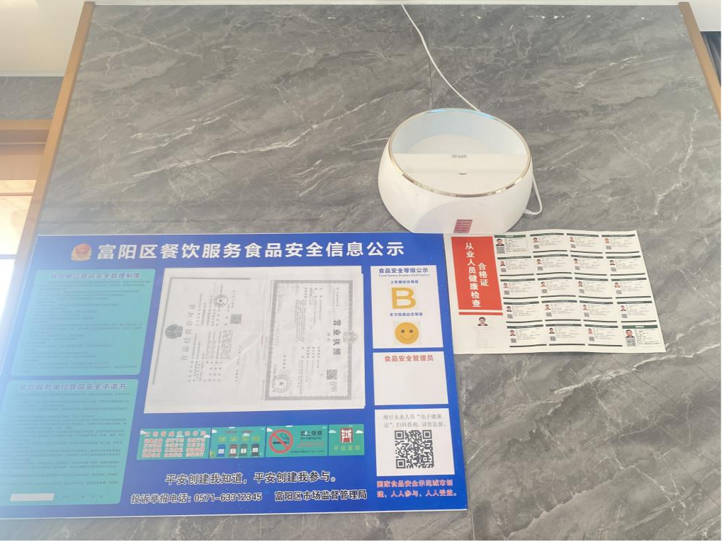 1. 证照合法有效并上墙公示,员工皆持有效健康证明上岗;